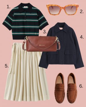 Pikirkan ini sebagai country club chic tetapi dengan keunggulan modern. Deryane Tadd (pemilik Ruang ganti Boutique di St. Albans) menciptakan tampilan ini 'clubhouse keren', dan saya pikir itu merangkumnya dengan sempurna. Kenakan garis -garis polo Anda dengan rok midi dan sepatu. Ekor kuda poni tinggi dan kaus kaki pergelangan kaki opsional.